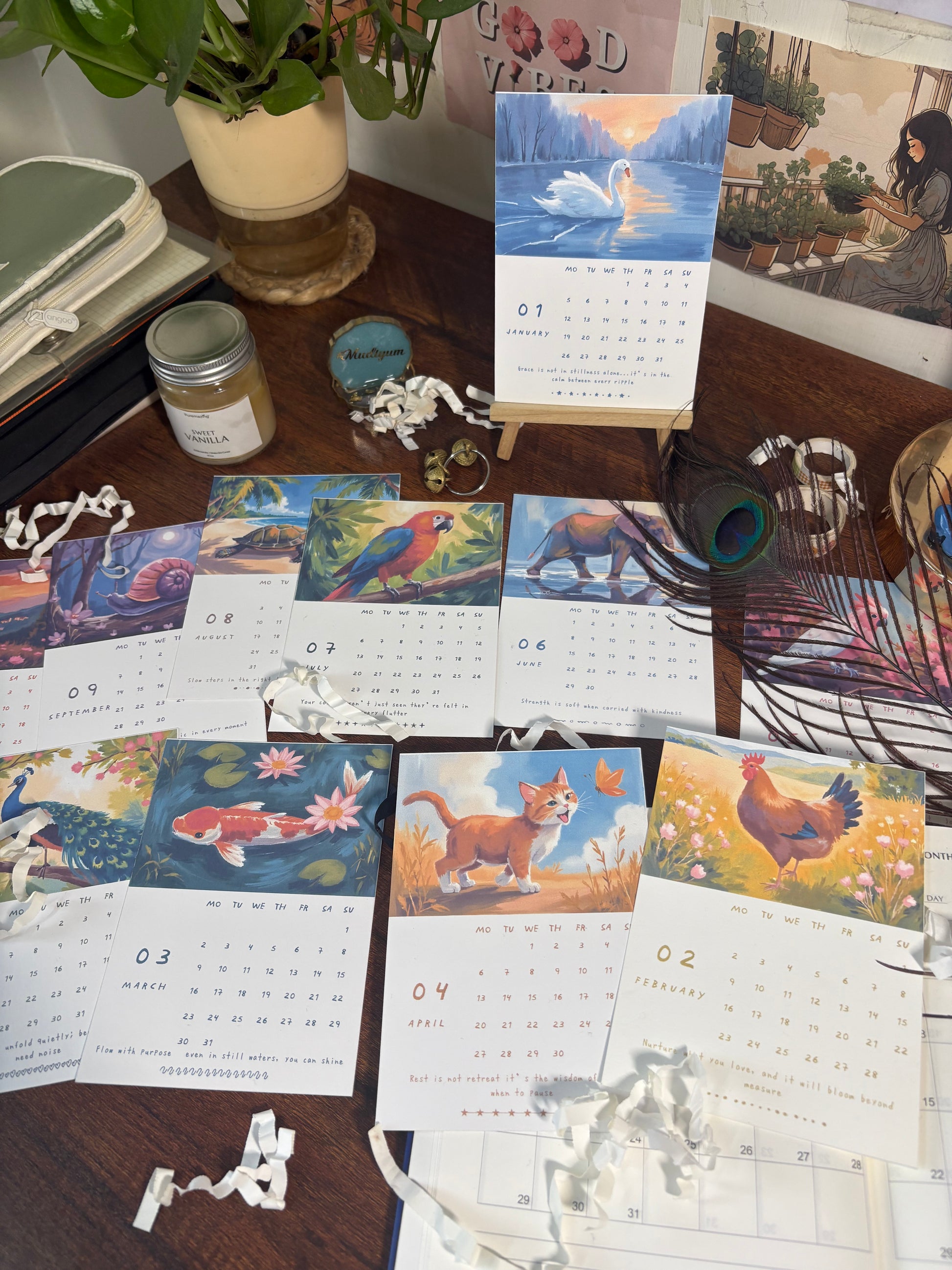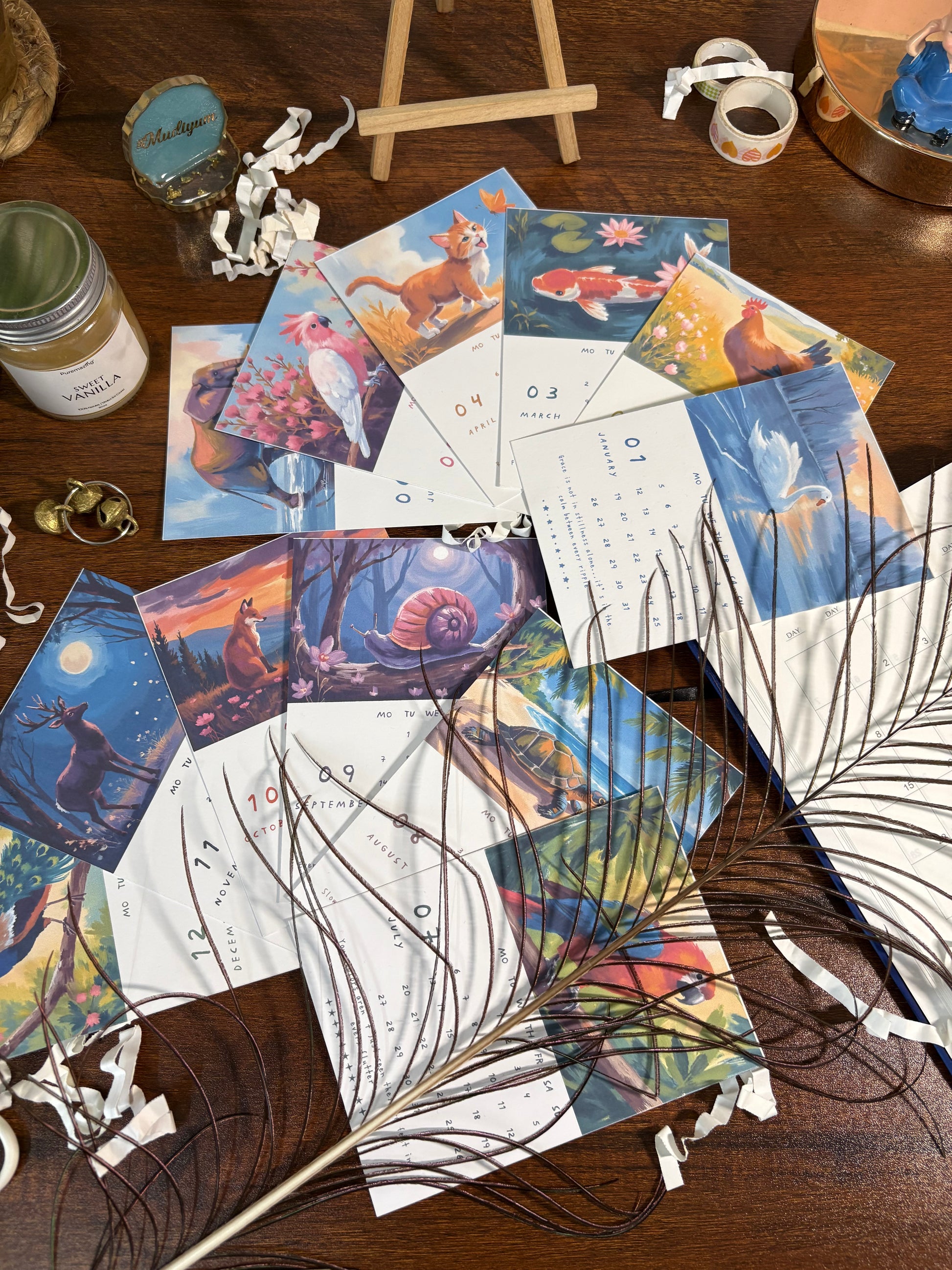 Add some gentle beauty to your workspace or home with this 2026 desk calendar designed by Bhama Studio. Each month features warm, mellow artwork that inspires quiet joy and soft living.